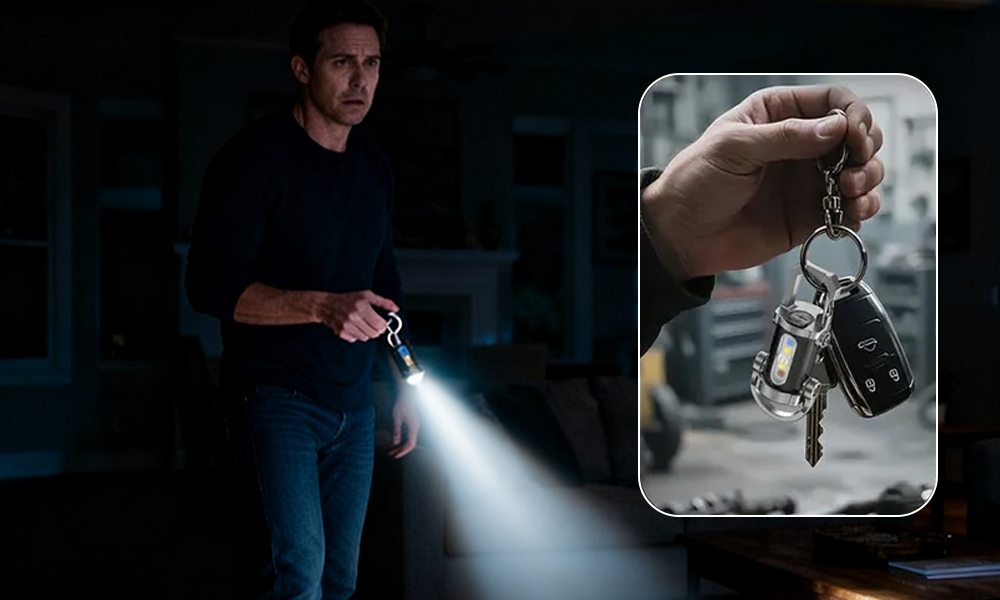 Zamiast szukać latarki po szufladach w ciemności, po prostu odpiąłem klucze z pasa, przełączyłem Sedyes™ KeyBlazer w tryb białego światła rozproszonego i całe pomieszczenie ponownie się rozświetliło.